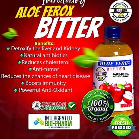 Aloe Ferox Bitter is a fresh-pressed dietary fibre juice formulated to support bowel regularity and gentle cleansing. It contains soluble aloe fibre, stevia extract, and a small amount of Aloe ferox bitter exude, traditionally used to support digestion and bowel movement.